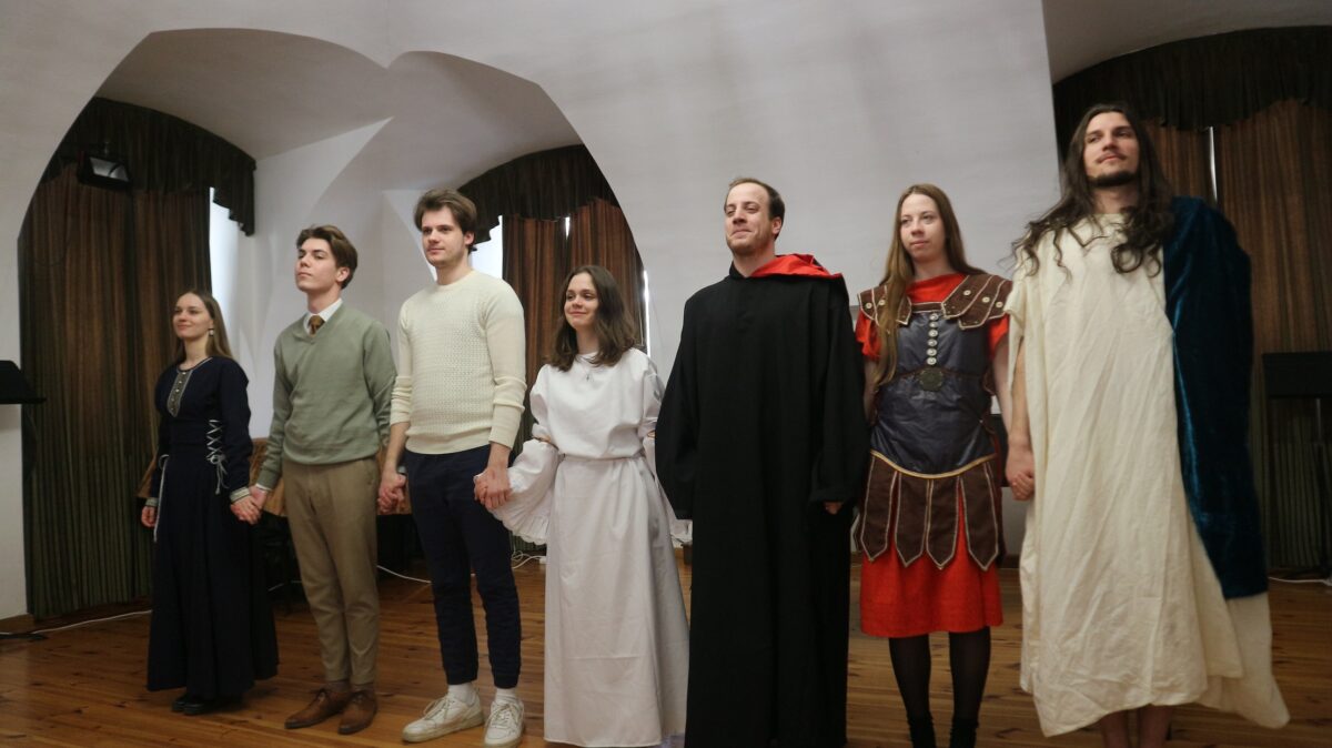 A diákok lelkes és bátor felolvasásuk során végig gondolták az adott hitbeli kérdéskört és nemcsak elmélkedtek róluk, hanem szereplőként ők maguk voltak a Szentháromság személyei vagy Ádám, Mária vagy a bűnbánó Péter apostol, tehát meg is jelenítették az adott isteni és emberi személyt.