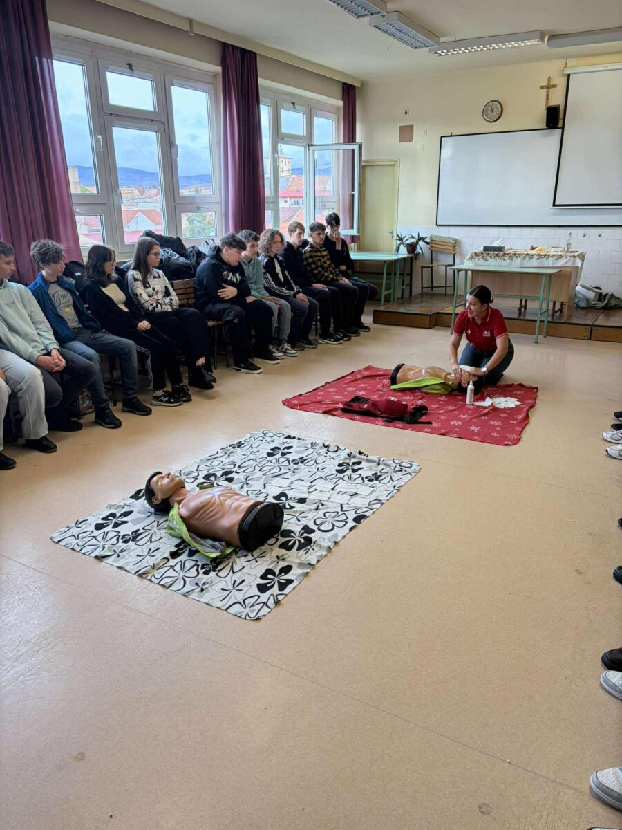 Az októberi Újraélesztés Világnapja kapcsán tartott újraélesztési elméleti és gyakorlati bemutatót az iskolánk több 9.-es és 10.-es osztályának, november 3.-án Balogh-Nagy Krisztina elsősegély oktató. Krisztina már 5 éve jár iskolánkba és tart a diákjaink számára előadást is a balesetekről, vészhelyzeti teendőkről és fulladásos helyzetekről, amiért nagyon hálásak vagyunk neki. Szerencsére azt tapasztaljuk, hogy gyermekeink kellő komolysággal és odafigyeléssel viszonyulnak a különleges órához, ami adott esetben akár egy ember életének a megmentését is eredményezheti.